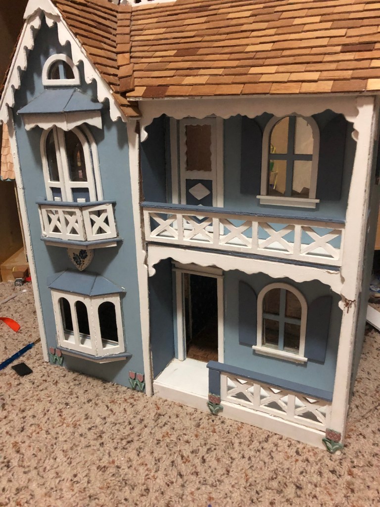 I’m not sure if I prefer building houses from nothing or remodeling. They both have their pros and cons. When you start with just a kit, putting it all together can be exhausting, but it is entirely your own work. With a remodel, it can be tough to change things without breaking the house, especially with smaller dollhouses. It’s hard to get into corners and such to repaint, and taking it apart may not be an option. But the house is already built, and that can be nice.