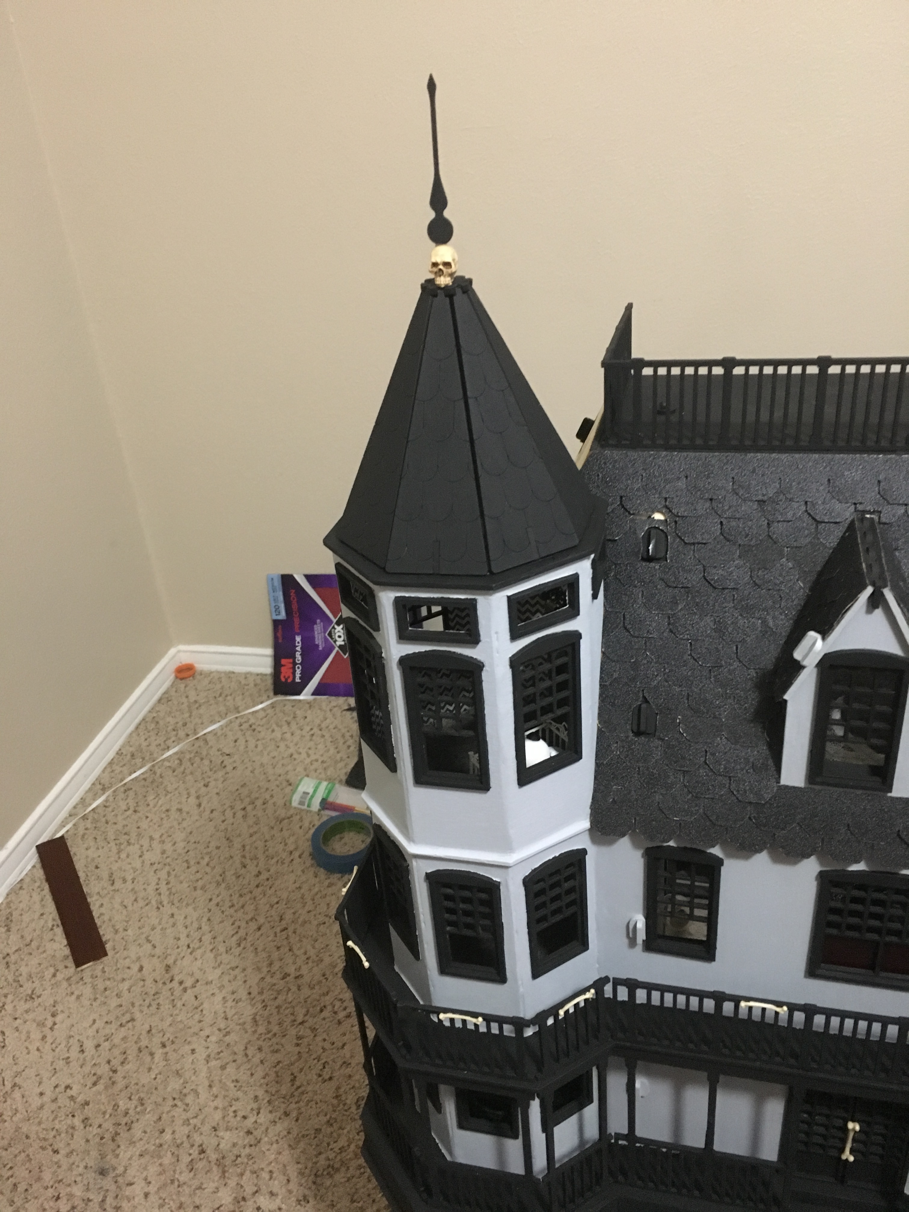 I used scrap wood, extra windows, and foam core to build a haunted house/ room box over the weekend!