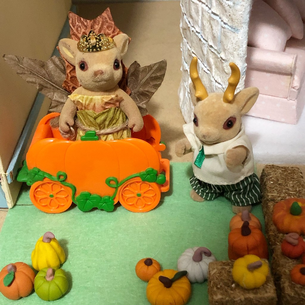 Some of Queen Maple’s pumpkins are from CatzillasMinis on Etsy, and the rest were made by me. Queen Maple still has to decorate the inside of her house, but she’s been so busy lately! It’s a lot of work to be a queen. Maybe King Maple will have to do the decorating this year.