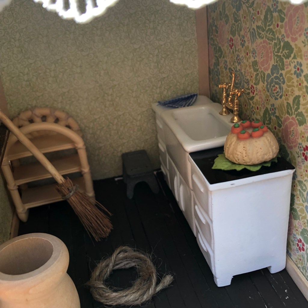 Because there isn’t any room left in my study, I’ve been building little room boxes that I don’t intend to keep if we ever move or something. Tulip LaPoodle’s house is the first of these.